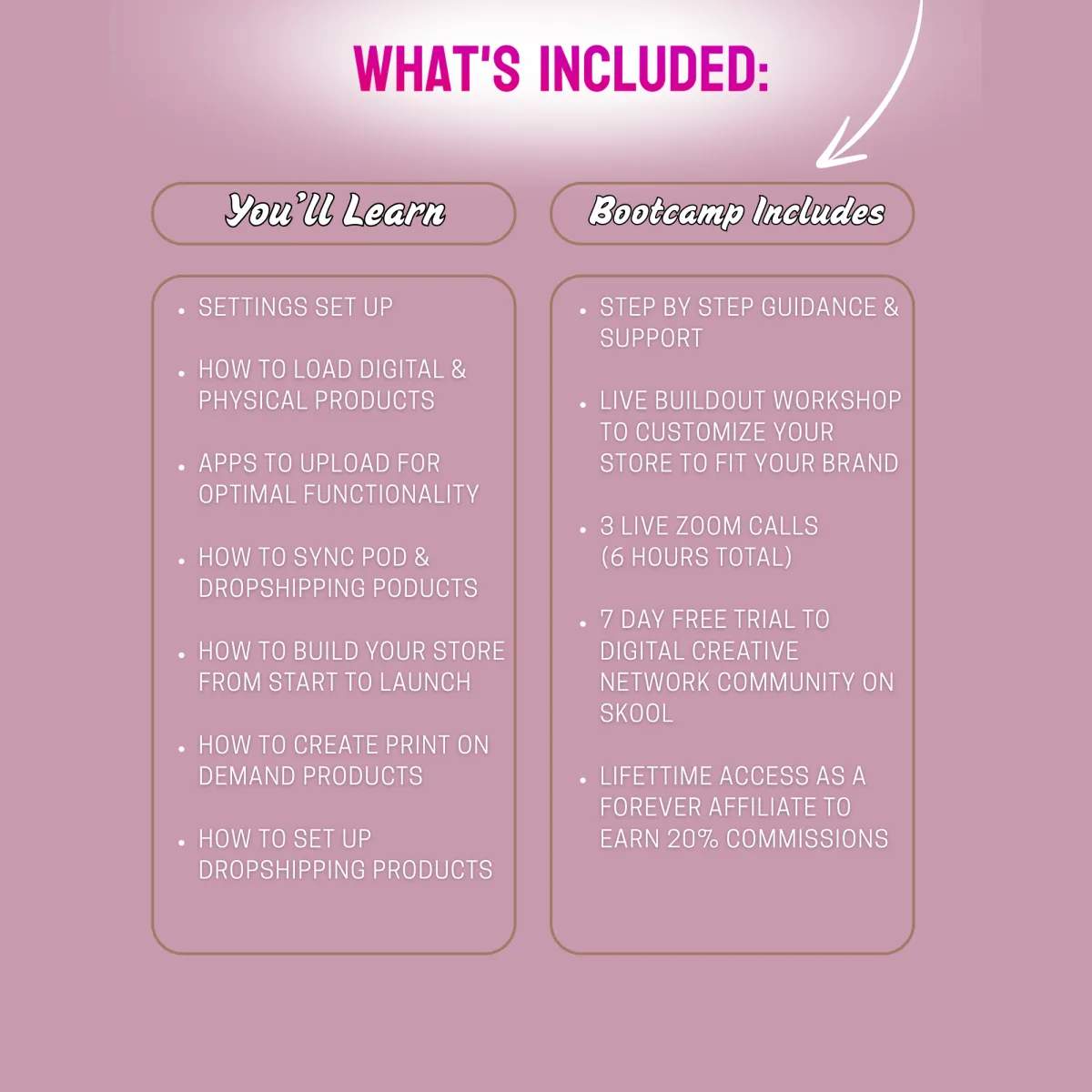 Stop overthinking and start selling. Our step-by-step bootcamp takes you from idea to open store in one week, No Inventory, No tech skills, No overwhelm, No excuses.